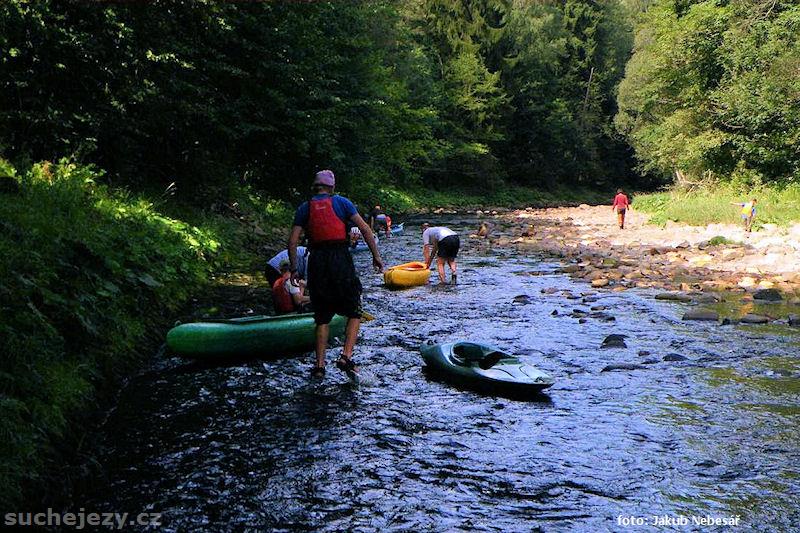 Úsek z Anína do Sušice je i za tohoto stavu překvapivě dobře sjízdný (pro lodě bez bagáže), bohužel s výjimkou uvedeného úseku. Procházka je to dlouhá a někdy bylo snazší táhnout lodě po cestě lesem.