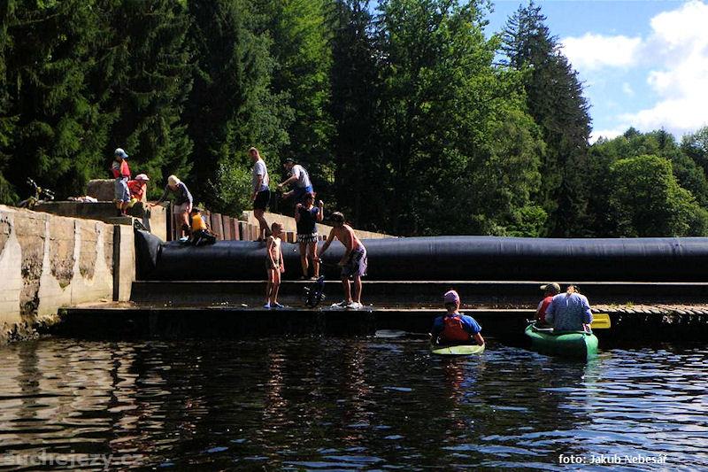 Lze přenášet pohodlně vlevo nebo přetahovat přes těleso jezu (nejlépe uprostřed, kde je něco jako propust).