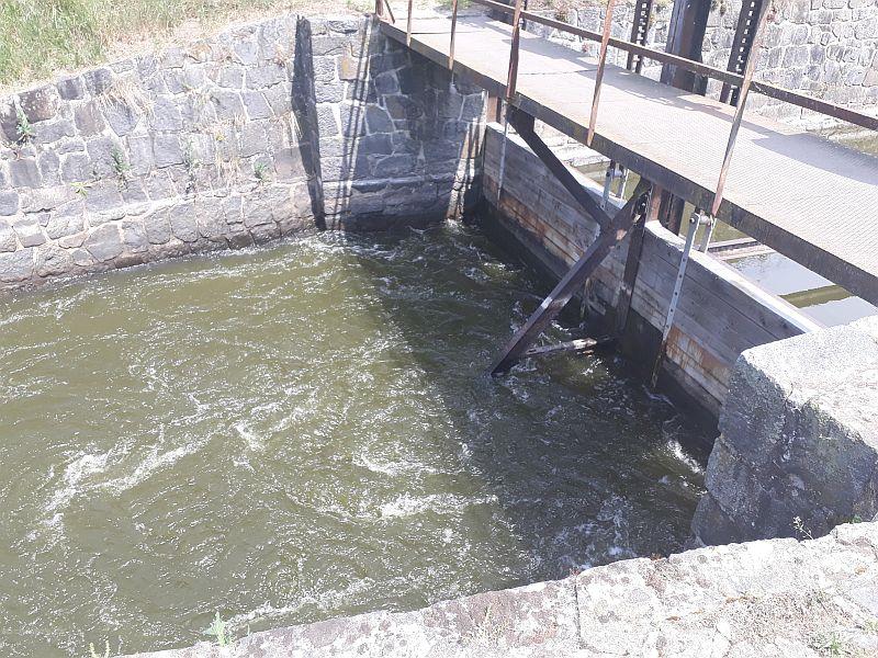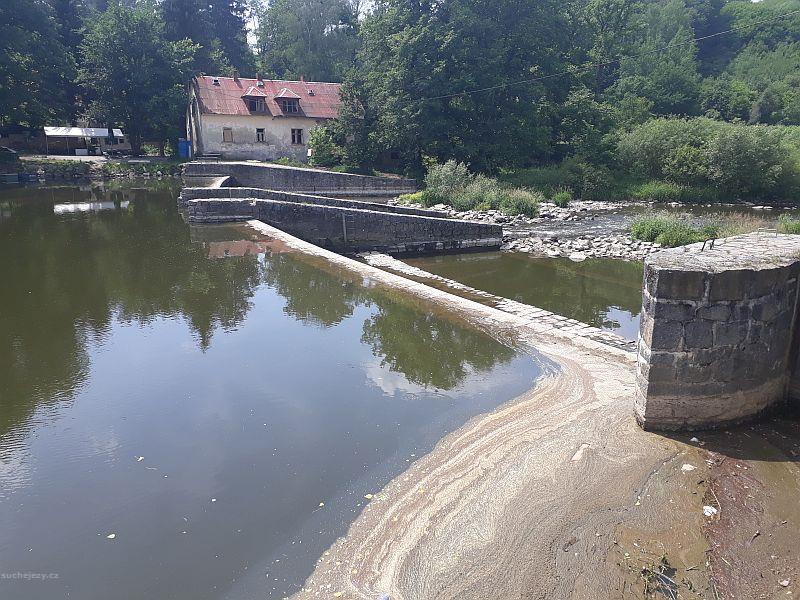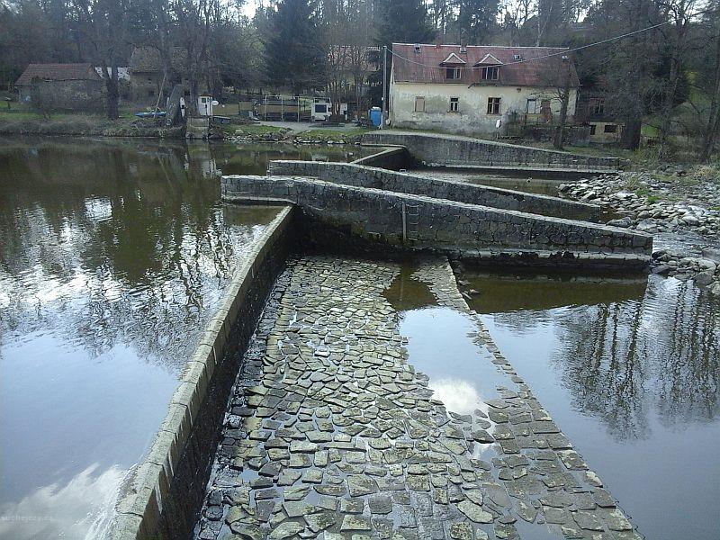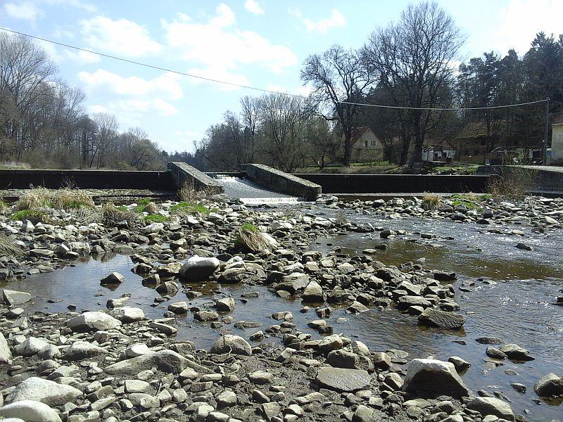 Popis jezu:Suchý celý jez a zahrazená vorová propust. Náhon se vrací zpět až po 1,4 km, pod jezem bývá zhruba 1 km bez vody.