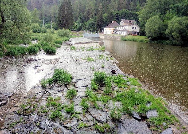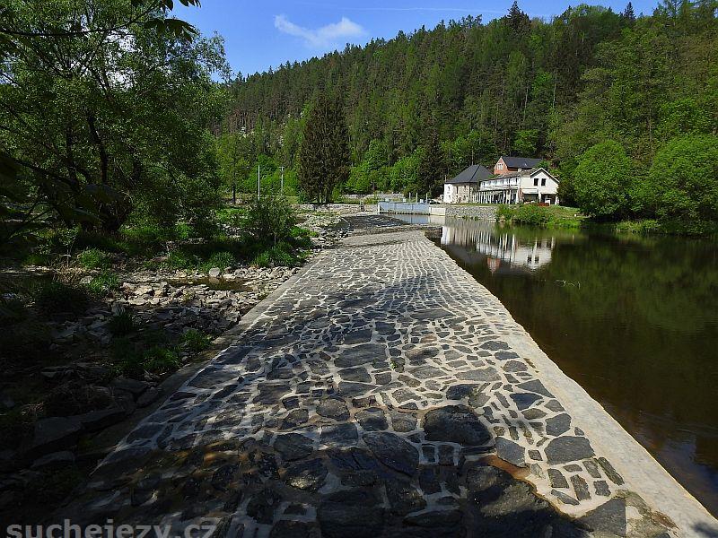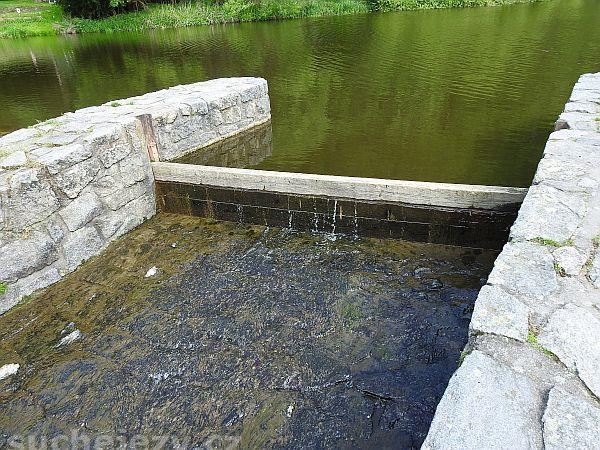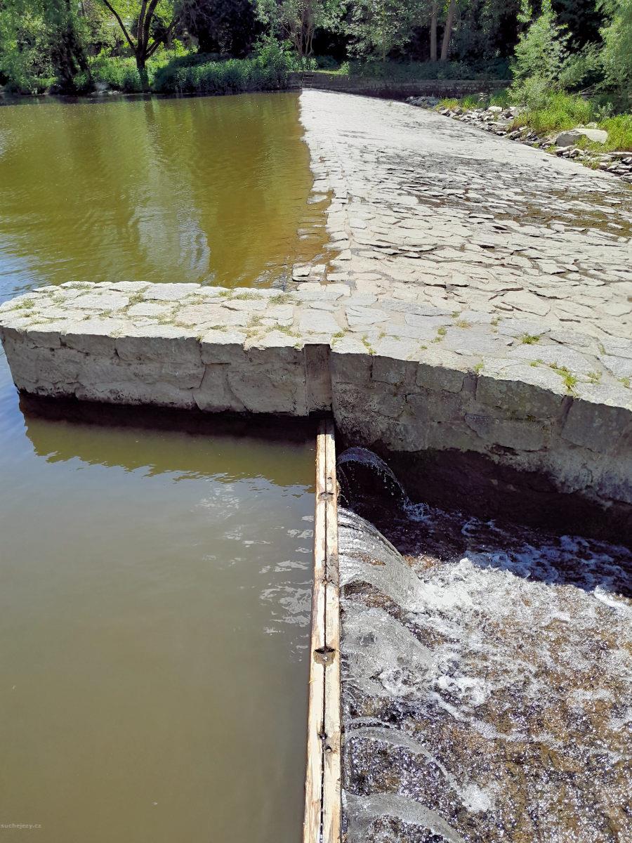 Suchý jez po zprovoznění derivační elektrárny. MZP je stanoven na 3,15 m3/s.