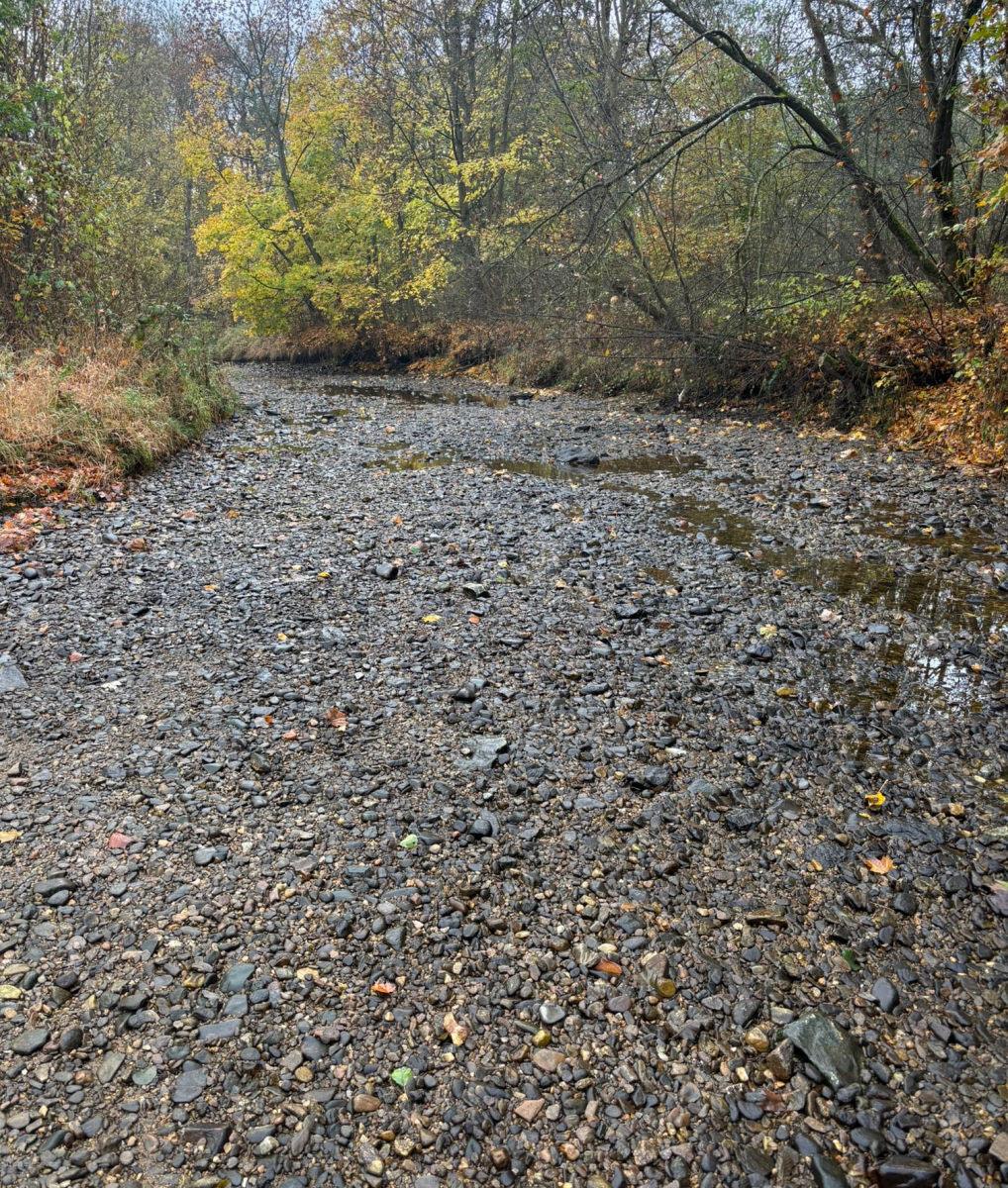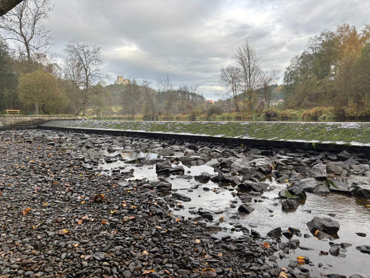23.10.2025 zcela suchý jez s úhynem mnoha živočichů v derivovaném úseku